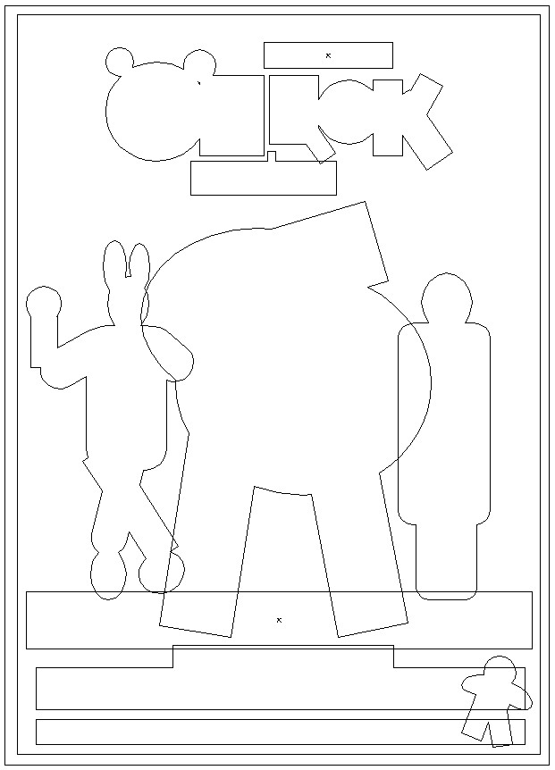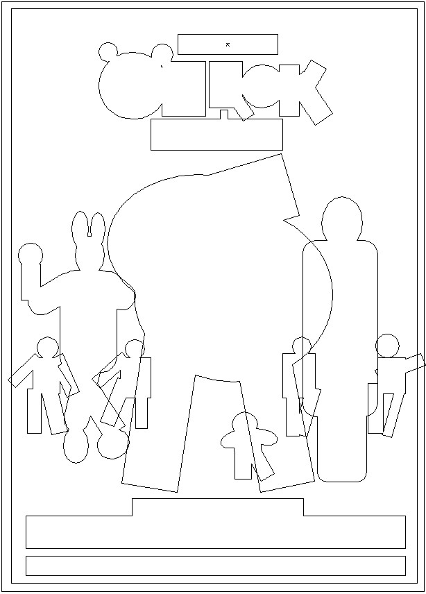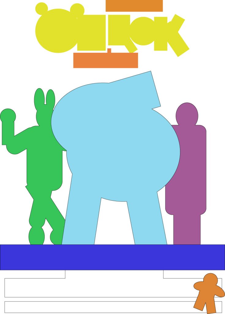 The initial blocked out composition for this poster was very cluttered, as I suspected it would be. With even the differentiating colours making it hard to decipher the overall design. Viewing the outlines, I added a platform and removed and moved several characters around, even resizing the one on the right to help create a more symmetrical image and resized the title for more of a focal point.