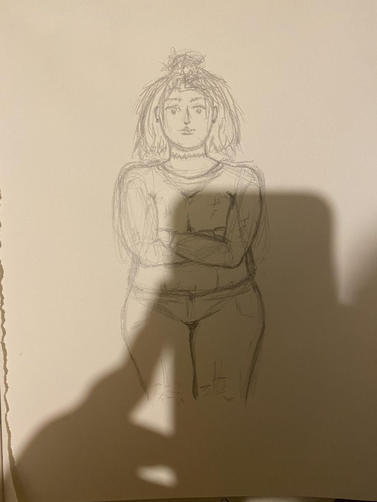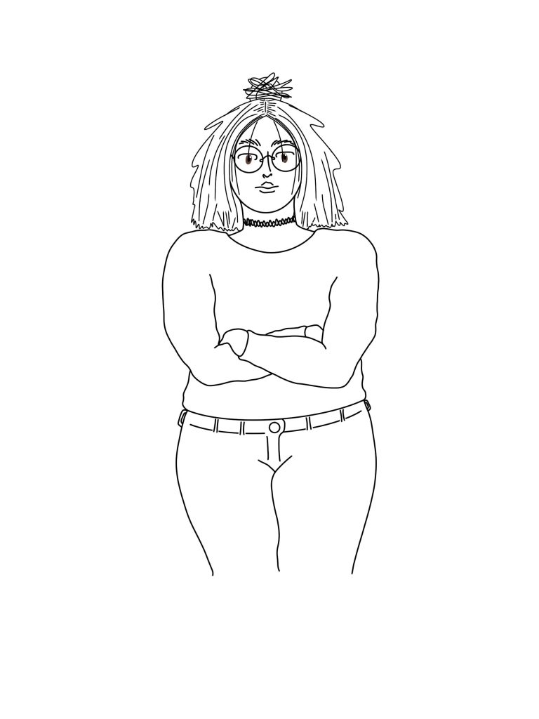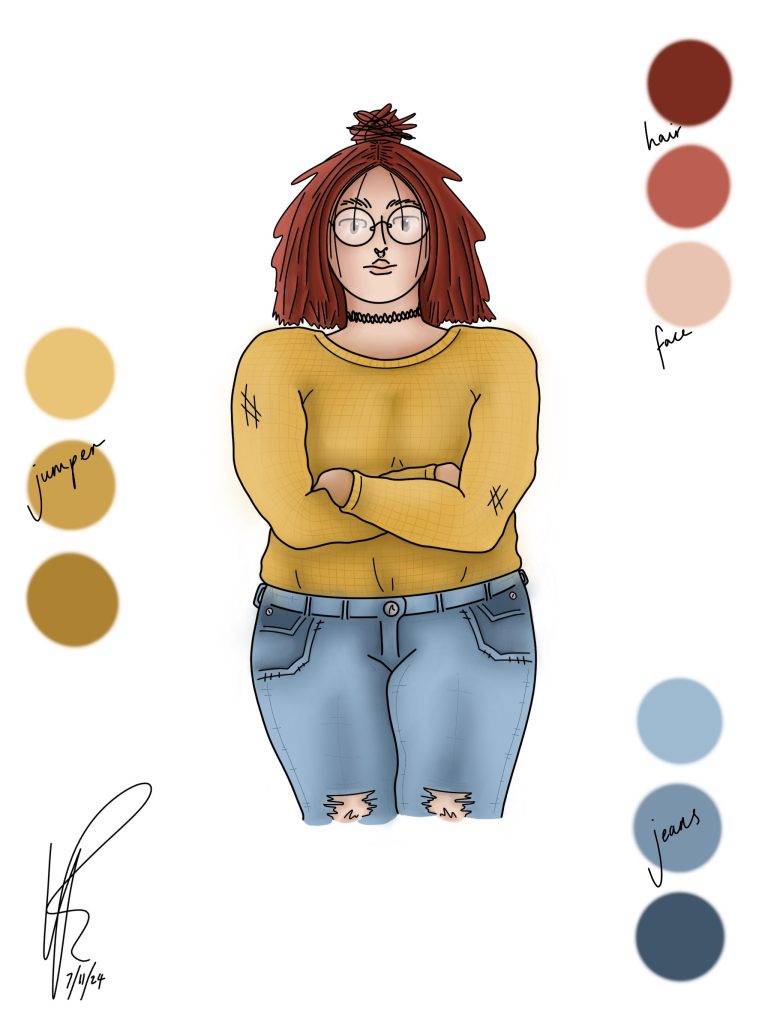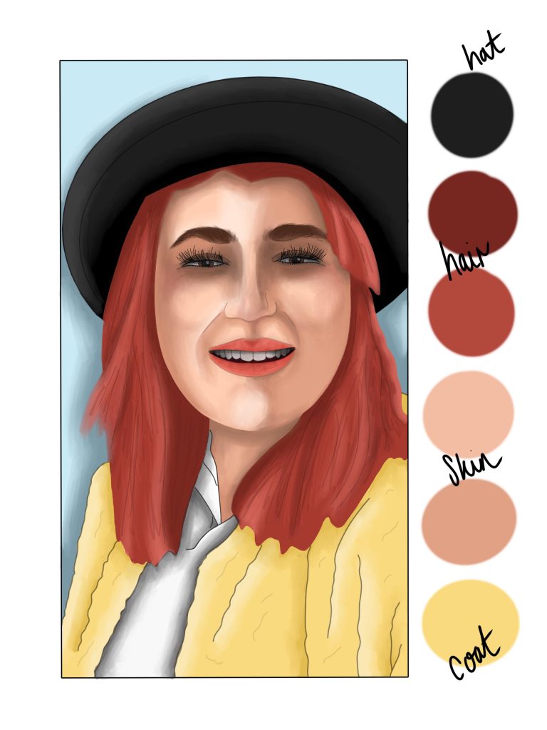 Moving onto my final self-portrait, where I chose a different approach. Instead of using an original image of myself, I chose to illustrate one. Starting in my sketchbook, I drew a rough mock-up of a character loosely inspired by myself. The next step was then to take a photo and load it into Photoshop. From here, I then began adding in more detailed line-work, through things like my hair and glasses, making sure to still stay in an illustrative style. My goal wasn’t to achieve a realistic result, but a sketched-out effect. After these steps where completed, I pretty much followed the same steps as my previous pieces; block colour, highlight and contour and blending. The finished piece is my favourite of the two, with a finished result I actually wanted and am proud of.