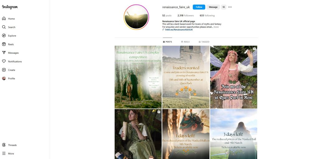 • rensissance_faire_uk (2025) Renaissance faire UK official page (@renaissance_faire_uk) . Instagram. https://www.instagram.com/renaissance_faire_uk/?hl=en [Accessed 15 Mar 2025]