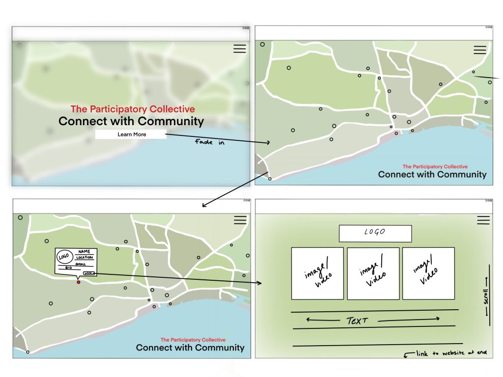 Due to this vast array of goals, I created a Figjam board that summarises each group and their projects. I felt this was the cleanest way to show all the information I found. One of the biggest pieces of information I set about finding was what each group stands for. While I do agree that it’s important to look at ‘The Participatory Collective’ as a whole, I didn’t want to lose the individual messages of the people involved when it came to my designs.
